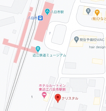 プリンセスコレクション(旧クリスタル)の場所は八日市駅を出てロータリーを渡り駅前の道を右に歩きます。